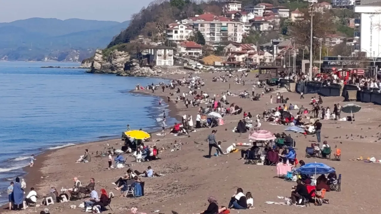 Sefer DEMİR / DÜZCE (İGFA) - Düzce'nin Akçakoca ilçesinde mevsim normallerinin üzerinde seyreden hava sıcaklıklarıyla birlikte vatandaşlar sahillere akın etti.