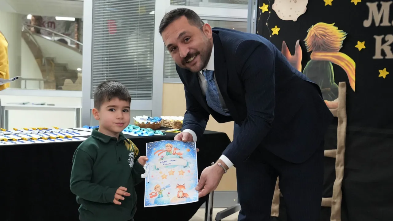 'Küçük Prens' temasıyla gerçekleştirilen etkinlikte çocuklara kalem, balon ve kitap ayracı hediye edilerek karne sevinçleri taçlandırıldı.