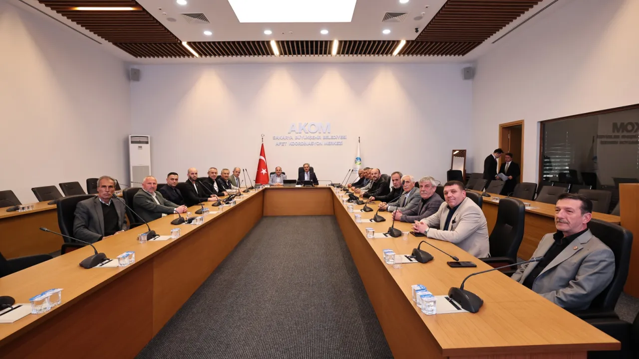 Sakarya Büyükşehir Belediye Başkanı Yusuf Alemdar, Serdivan Muhtar Derneği Başkanı Fikret Can ve Serdivan mahalle muhtarlarını AKOM'da ağırladı.