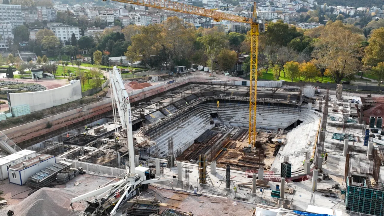 BURSA (İGFA) - Bursa'da 1972 yılında hizmete açılan ve kentin yakın tarihinde önemli anılara sahne olan, ekonomik ömrünü tamamladığı gerekçesiyle 2020 yılında yıkılan Atatürk Spor Salonu, Bursa Büyükşehir Belediyesi ile tekrar ayağa kalkıyor. Daha önce 3.100 kişilik seyirci kapasitesiyle planlanan ve Başkan Mustafa Bozbey'in talimatları doğrultusunda revize edilerek seyirci kapasitesi 5 bin 16 kişiye yükseltilen Atatürk Spor Salonu'ndaki çalışmalar devam ediyor.