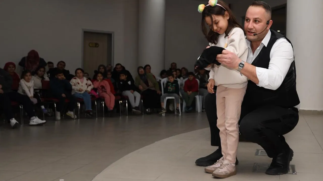Bu kapsamda Demirtaş Kültür Merkezi'nde gerçekleştirilen sihirbazlık gösterisi, çocuklar tarafından yoğun ilgi gördü. Salonun büyük bir bölümünü dolduran çocuklar, sahnede sergilenen birbirinden eğlenceli ve şaşırtıcı gösteriler karşısında büyük bir heyecan yaşadı. Sihirbazın sahnelediği renkli gösteriler, çocukların hayal dünyasını zenginleştirirken, salonda bulunan aileler de bu eğlenceli anlara ortak oldu.