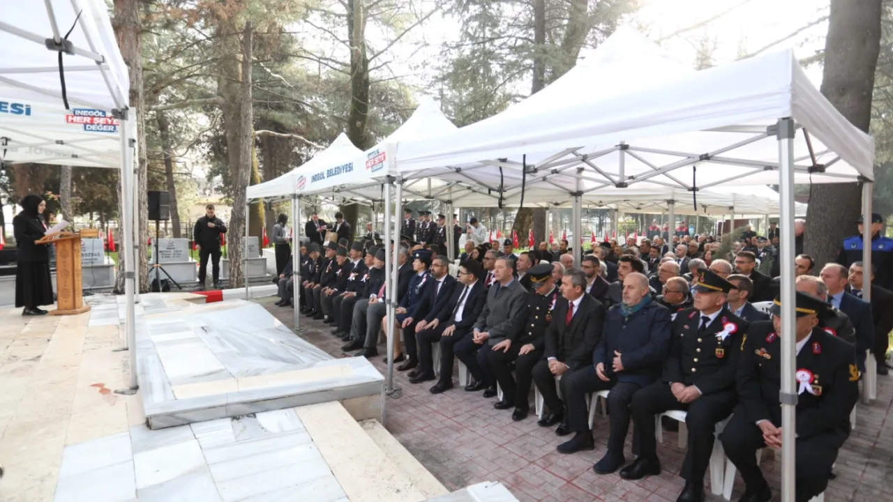 09.30'da Hastane Mezarlığı içerisinde bulunan Garnizon Şehitliğinde başlayan törenlerde, ilk olarak çelenk töreni yapıldı. İlçe protokolünün yoğun katılım gösterdiği törende; İnegöl Kaymakamlığı, İnegöl Belediye Başkanlığı ve Garnizon Komutanlığı çelenkleri tören alanına sunuldu.