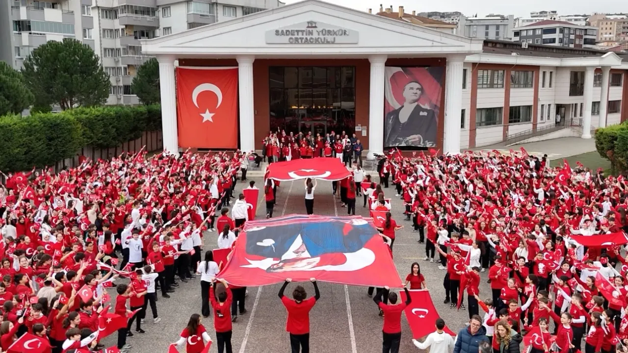 Nilüfer Sadettin Türkün Ortaokulu öğrencileri, 'Bayrak Sevgisi' etkinliğinde Türk Bayraklarıyla anlamlı mesaj verdi. Milli Eğitim Bakanlığı'nın talimatı ve Türkiye Yüzyılı Maarif Modeli vizyonu doğrultusunda düzenlenen 'İlk Derste Bayrak Sevgisi' temalı etkinlikte, okul bahçesi kırmızı-beyaz renklere büründü.