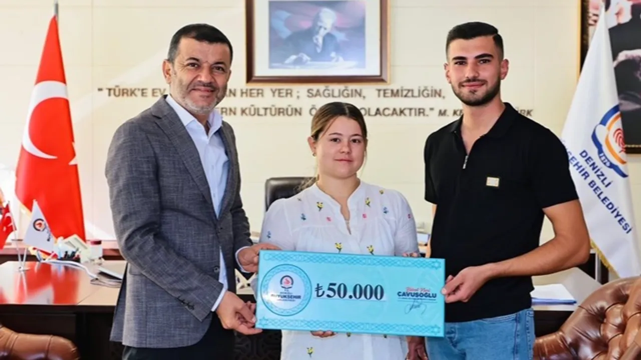 Denizli Büyükşehir Belediyesi'nin kırsalda yaşayan genç çiftlere yönelik başlattığı Evlenme Desteği Projesi kapsamında ilk destek alan Fatma ve Yasin Örk çifti, Başkan Bülent Nuri Çavuşoğlu'nu ziyaret etti.