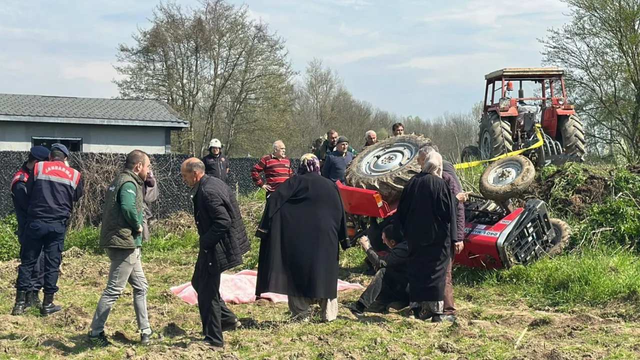 Düzce Merkez'e bağlı İhsaniye Köyü Karadere - Hasanağa yolunda meydana gelen kazada, kontrolden çıkan traktör devrildi.