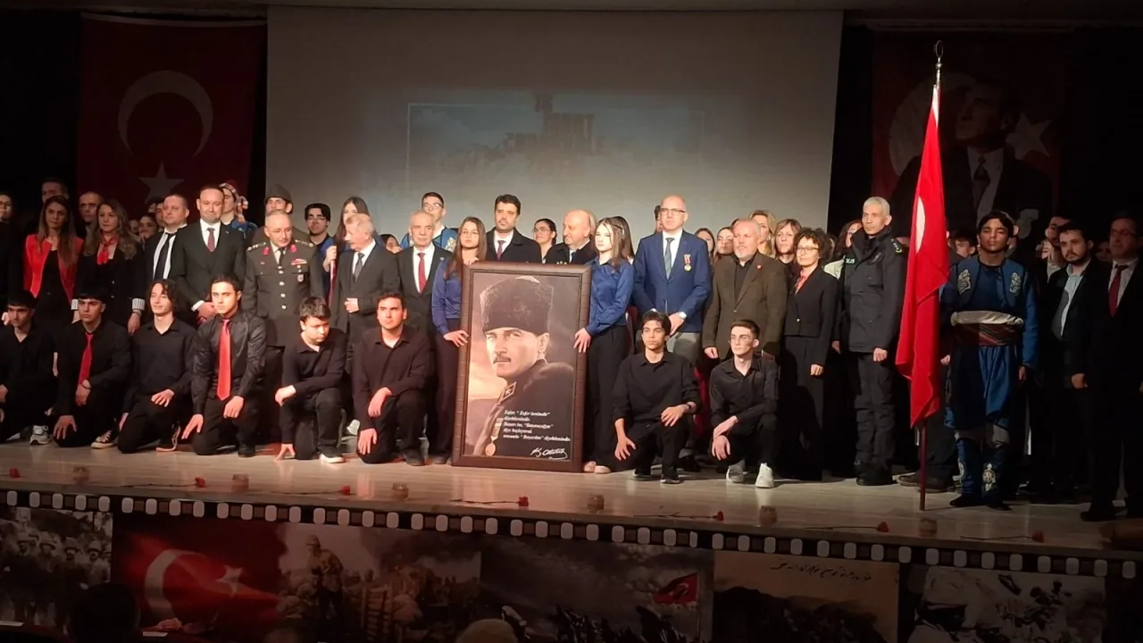 Keşan Fen Lisesi tarafından hazırlanan program, Saygı duruşu ve İstiklal Marşı'nın söylenmesiyle başlayan törende günün anlam ve önemini belirten konuşmayı Keşan Fen Lisesi Tarih Öğretmeni Melda Ernez, yaparak şunları söyledi. 'Selam olsun Çanakkale'de vatanı ve namusu için can veren şehitlere! Selam olsun Çanakkale gazilerine! Selam olsun yüreciği Çanakkale şehitlerimizin idealiyle atan gençlerimize! Sayın Kaymakamım, sayın Komutanım, sayın Belediye Başkan Vekilim, değerli konuklar, sevgili öğrenciler; Bugün, haksız düşman saldırılarına karşı tam 253 bin askerimizi şehit verdiğimiz, ancak tarihe altın harflerle 'Çanakkale Geçilmez!' sözünü yazdırdığımız büyük zaferimizi anmak üzere toplanmış bulunuyoruz. Tarih boyunca hiçbir millete nasip olmayan büyük bir mücadelenin adıdır Çanakkale. Yüce Türk milletinin kahraman evlatları tarafından yazılmış eşsiz bir destandır. Şairin ifadesiyle Çanakkale; Bedir'de savaşan aslanlar kadar yiğit askerlerin destan yazdığı, ateşten bir imtilıandır. Kınalı kuzuların gül bahçesine girercesine şehadete koştuğu yerdir Çanakkale. Çanakkale millet olarak bizim ebedi ve ezdi kardeşliğimizi ifade ettiği kadar, bulunduğumuz bölgenin de kader ortaklığın' yansıtır, sembolleştirir. Gönül coğrafyamızın dört bir yanından gelerek Anadolu'nun müdafaası için gözlerini kırpmadan canlarını veren yiğ.itlerin her bir ferdine Allah'tan rahmet diliyoruz. Çanakkale'de y.11an destandan alacağımız dersler, bizlere ilham kaynağı olacaktır. Birliğimize, beraberliğimize, kardeşliğimize sıkı sıkıya sahip çıktığımızda yedi düvel üzerimize gelse yıkılmayacağımizın ispatı olan Çanakkale ruhu, yolumuzu aydınlatmayı sürdürecektir. Mustafa Kemal ATATÜRK Çanakkale zaferi ve ruhunu tanımlarken şu sözleri kullanmışur: 'Çanakkale Zaferi, Türk askerinin ruh kudretini gösteren şayanı hayret ve tebrik bir misaldir. Emin olmalısınız ki, Çanakkale Muharebelerini kazandıran bu yüksek ruhtur. Türk milletinin Çanakkale'de göstermiş olduğu kahramanlık, vatan sevgisinin ne kadar güçlü olduğunun en büyük ispatıdır.' Çanakkale Deniz Zaferi'nin İll. yıl dönümünü kutluyor, başta Devletimizin ve Cumhuriyetimizin kurucusu Gazi Mustafa Kemal olmak üzere bütün kahraman şehitlerimizi rahmetle, gazilerimizi şükranla anıyorum. Ruhları şad, mekânları cennet olsun. Hepinizi saygıyla selamlıyorum. Saygılarımla.'