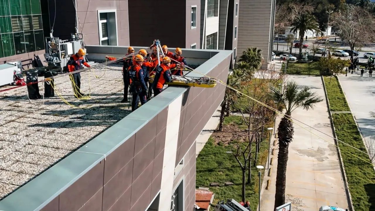 Ekipler, üst katlarda mahsur kalan vatandaşları merdivenli araçla güvenli şekilde aşağı indirdi. UMKE ekipleri tarafından olay yerinde sahra sağlık alanı kurulurken, yaralı olduğu varsayılan kişilere ilk müdahale yapıldı. Emniyet birimleri ise çevrede güvenlik önlemlerini sürdürerek senaryo kapsamında şüpheli şahısların yakalanmasına yönelik çalışma gerçekleştirdi.