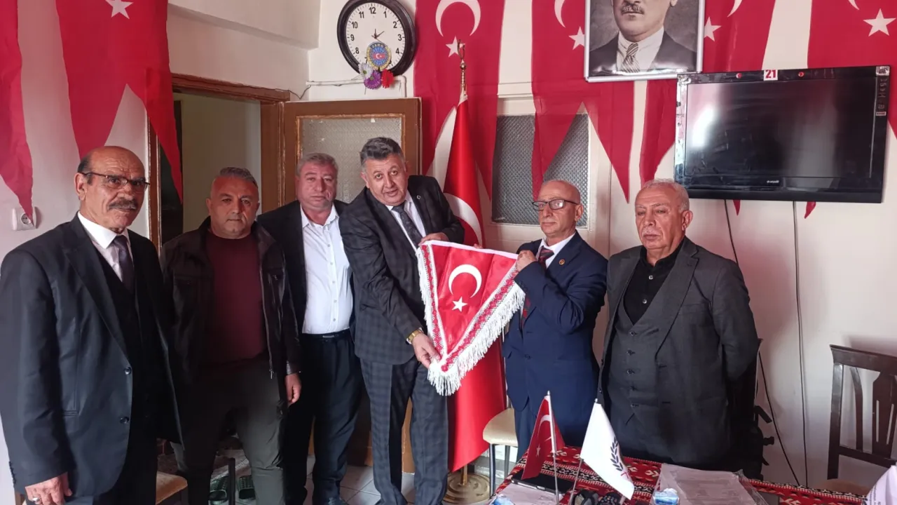 Seçimler sonrasında genel başkanlığa seçilen Altmışkara 'ya Genel Başkan baş danışmanı Durgut Türk bayrağı hediye etti.