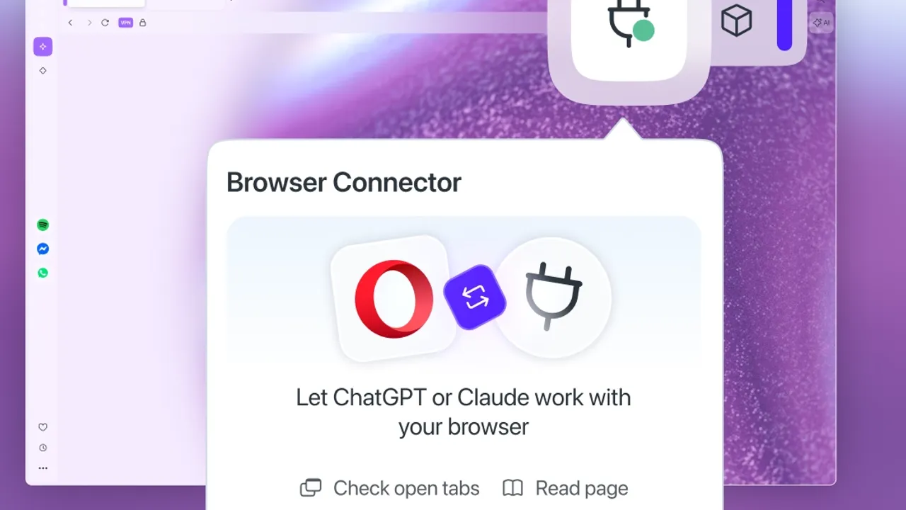 Opera, Tarayıcı Bağlayıcısı özelliğiyle yapay zekâ araçlarını doğrudan tarayıcı oturumlarına entegre etti.