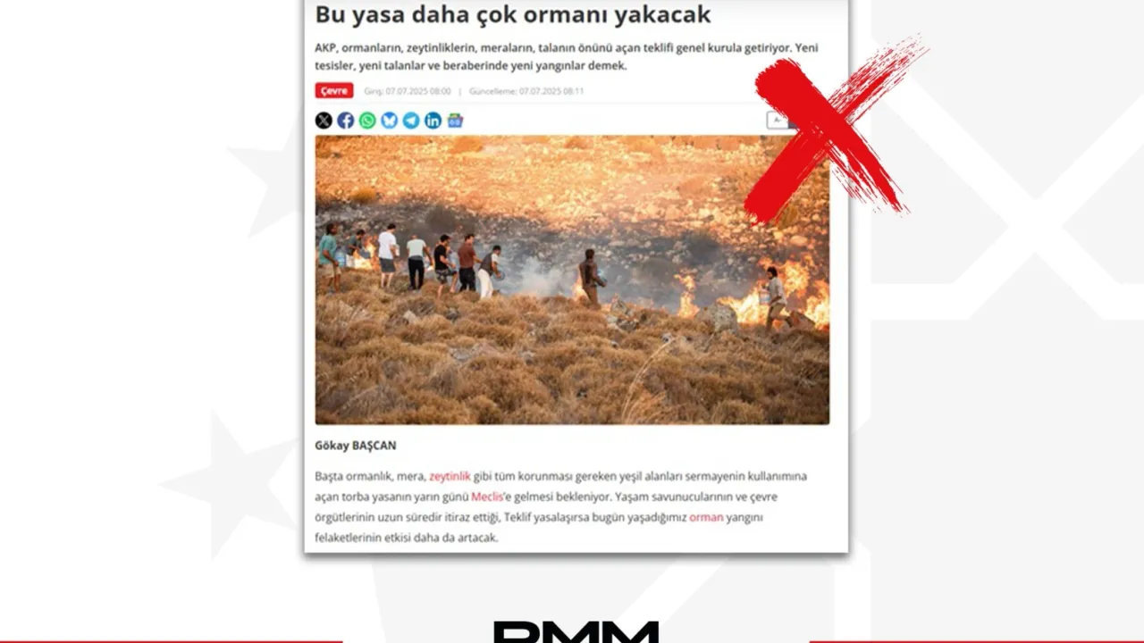 Cumhurbaşkanlığı İletişim Başkanlığı, bazı basın yayın organları ve sosyal medya platformlarında “Torba yasa ile ormanlar, zeytinlikler ve meralar sermayeye açılıyor; bu da orman yangınlarını artıracak” şeklindeki iddiaların gerçek dışı olduğunu ve kamuoyunu yanıltmaya yönelik dezenformasyon içerdiğini duyurdu.