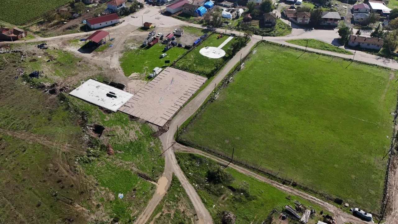 Sakarya Büyükşehir Belediyesi, Yusuf Alemdar'ın müjdelediği spor yatırımları kapsamında Geyve'nin Bayat ve Eşme Mahallesi'nde gençlerin sosyal yaşamına dokunacak sentetik çim futbol sahası ile basketbol ile voleybol sahalarının inşaatından ilk fotoğrafları paylaştı.