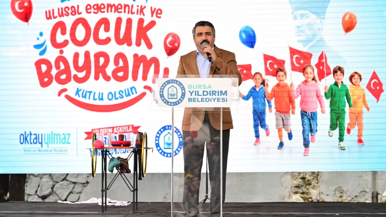 Yıldırım Belediyesi olarak bizler de geleceğimizin teminatı olan evlatlarımızın yüzündeki bir tebessümü her şeyin üstünde tutuyoruz. Çocuklarımız bizim en büyük hazinemiz, yarınlarımızın mimarlarıdır. Onların nitelikli, donanımlı ve mutlu bireyler olarak yetişmesi için tüm imkanlarımızı seferber ediyoruz. Bugün burada gözlerindeki o parıltıyı görmek bizler için en büyük motivasyon kaynağı. Tüm çocuklarımızın ve milletimizin 23 Nisan Ulusal Egemenlik ve Çocuk Bayramı'nı en içten dileklerimle kutluyorum' ifadelerini kullandı.